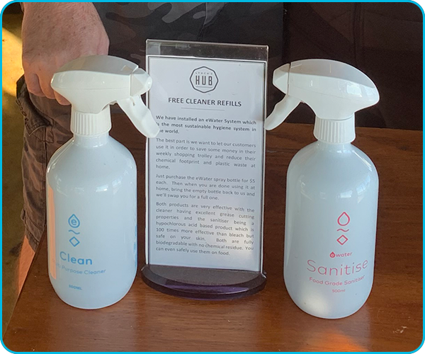 To further reduce the chemical footprint, Blake makes his eWater system available to his clientele. For just $5 per bottle, Lynchs Hub provides refills at no additional cost, helping more and more people switch onto to the benefits of eWater.